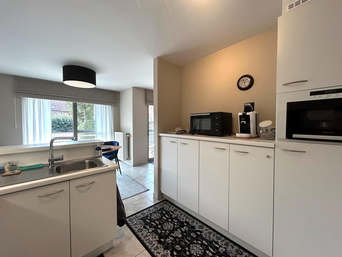 Daarna gaat u verder richting de geïnstalleerde keuken en gerieflijke berging met de nodige aansluiting voor het plaatsen van een wasmachine.